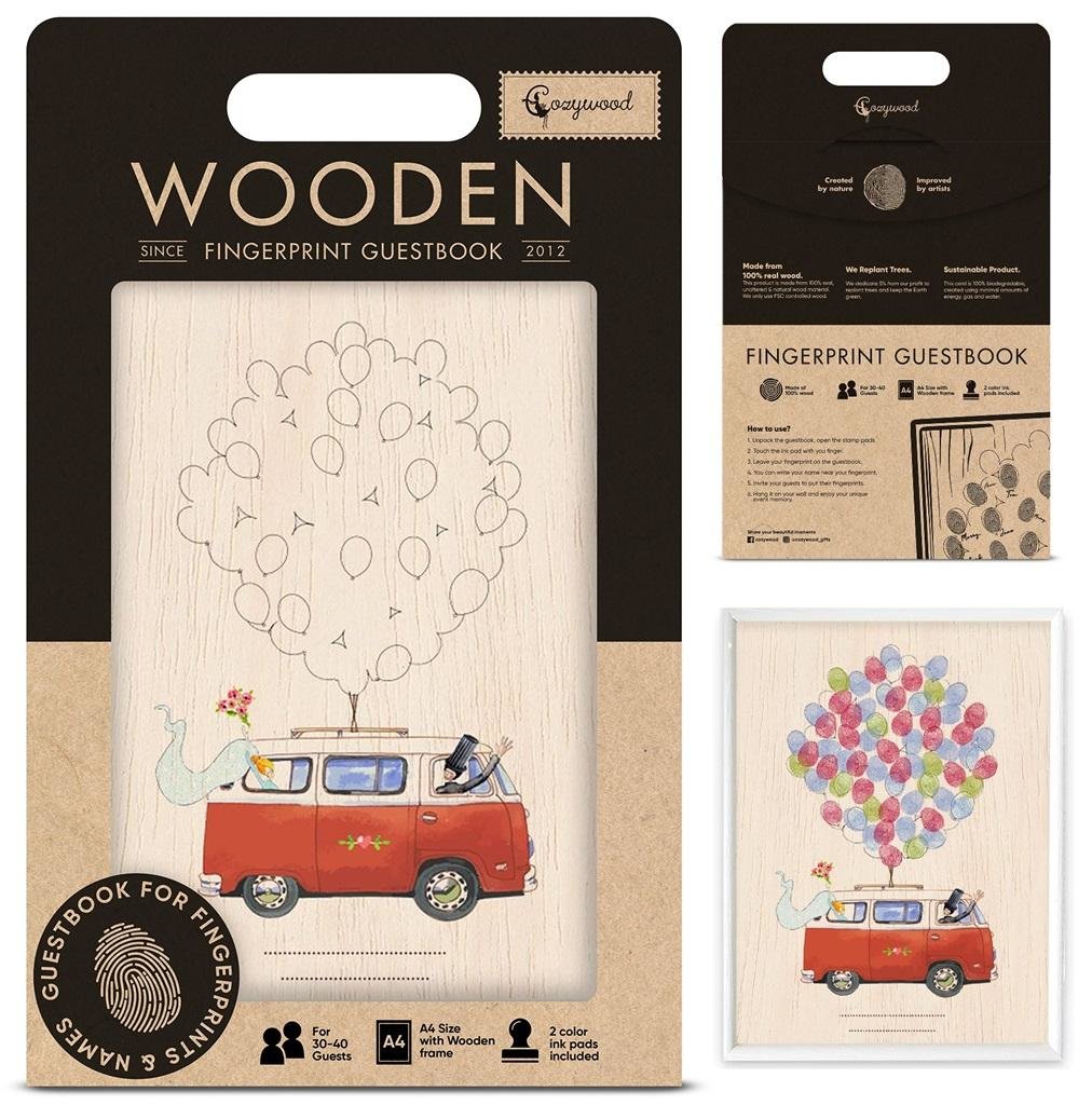 Księga gości weselnych w formie drewnianego obrazu oprawionego w białą ramkę, na który goście złożą swoje odciski palców, tworząc dzięki temu niezapomnianą pamiątkę dla Pary Młodej. Do zestawu dołączone są 2 tusze w kolorach czerwonym i niebieskim. Tusz w łatwy sposób można zmyć z palców....