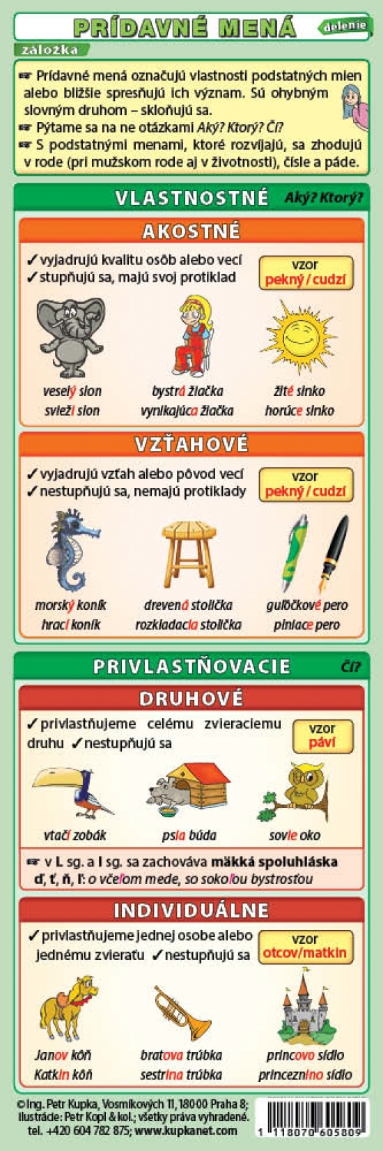 Záložka obsahuje základné delenie prídavných mien a stupňovanie (zadná strana). przeczytaj całość