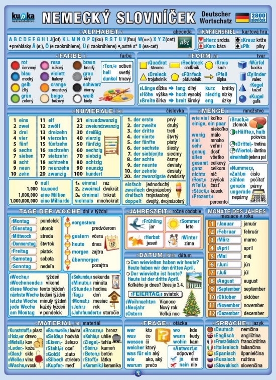 Ilustrovaný nemecko-slovenský slovníček s 2.800 slovíčkami v 57 témach ucelene pokrýva základnú slovnú zásobu. Praktický formát skladačky s laminovanou úpravou. przeczytaj całość