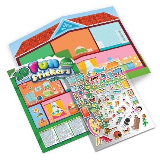 W którym pokoju znajduje się wanna? Gdzie mama gotuje nam smaczny obiad? Gdzie pasuje szafa, wanna, lustro, toster czy patelnia? Podaruj dzieciom zabawę, która nie ma końca, i rozwijaj ich wyobraźnię dzięki naklejkom 3D - innowacyjnej nowości z wielokrotnego użytku w wersji Mój wymarzony dom! Uroczy zestaw fabularny zawiera dwustronne tło A3 z widokami pokoi w domu i jego podwórka oraz kilkadziesiąt wielokrotnie przyklejalnych piankowych naklejek 3D. Każde małe dziecko zamieni w profesjonalnego projektanta wnętrz, który urządzi dom według własnych pomysłów. Naklejki 3D dają pole dla niesamowitej liczby opowieści, które rozgrywają się tuż przed oczami dziecka. Ono jest ich autorem i narratorem. Brak ograniczeń, brak zasad, tylko wspaniała dziecięca fantazja i wyobraźnia. Odkryj także fantastyczne możliwości naklejek 3D!