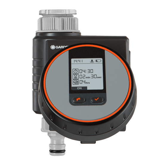 S GARDENA zavlažovacím počítačem Flex je možné řídit zavlažování na balkonech, střešních terasách nebo dvorech flexibilně a velmi snadno. Provoz zajišťuje baterie; zavlažovací počítač lze přímo připojit na vodovodní kohoutek a snadno ovládat pomocí moderního vnějšího otočného prvku pro výběr dat...