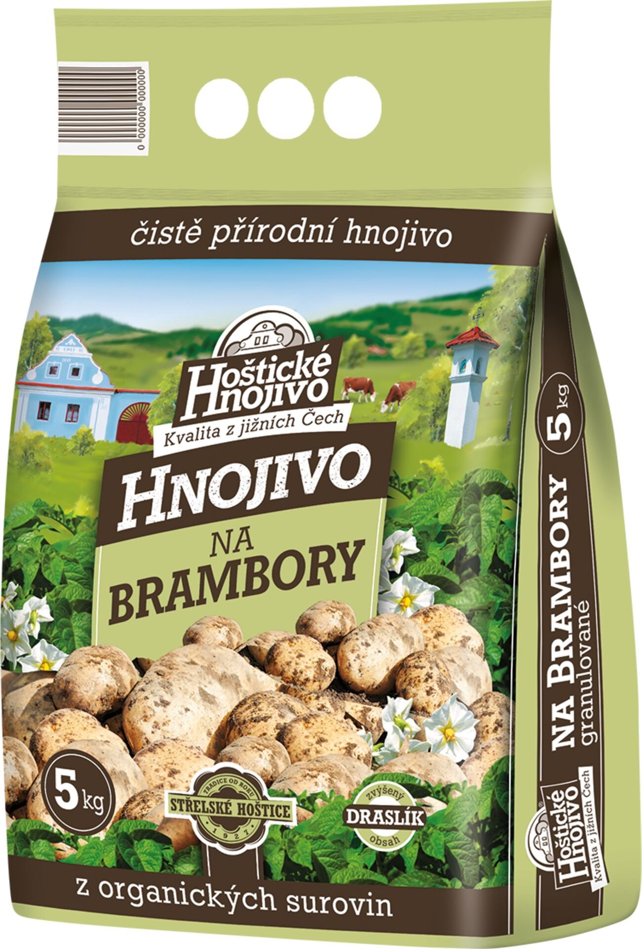 Hoštické organiczne nawozy do ziemniaków to całkowicie naturalny nawóz produkowany z fermentowanego odchodów drobiowych i vinazy (produkt uboczny powstający przy przetwarzaniu melasy). Nawóz zawiera substancje organiczne, podstawowe i dodatkowe składniki odżywcze (N, P, K, Ca i Mg), a także mikroelementy (B, Cu, Fe, Mo, Mn i Zn) jako naturalną część użytych surowców.