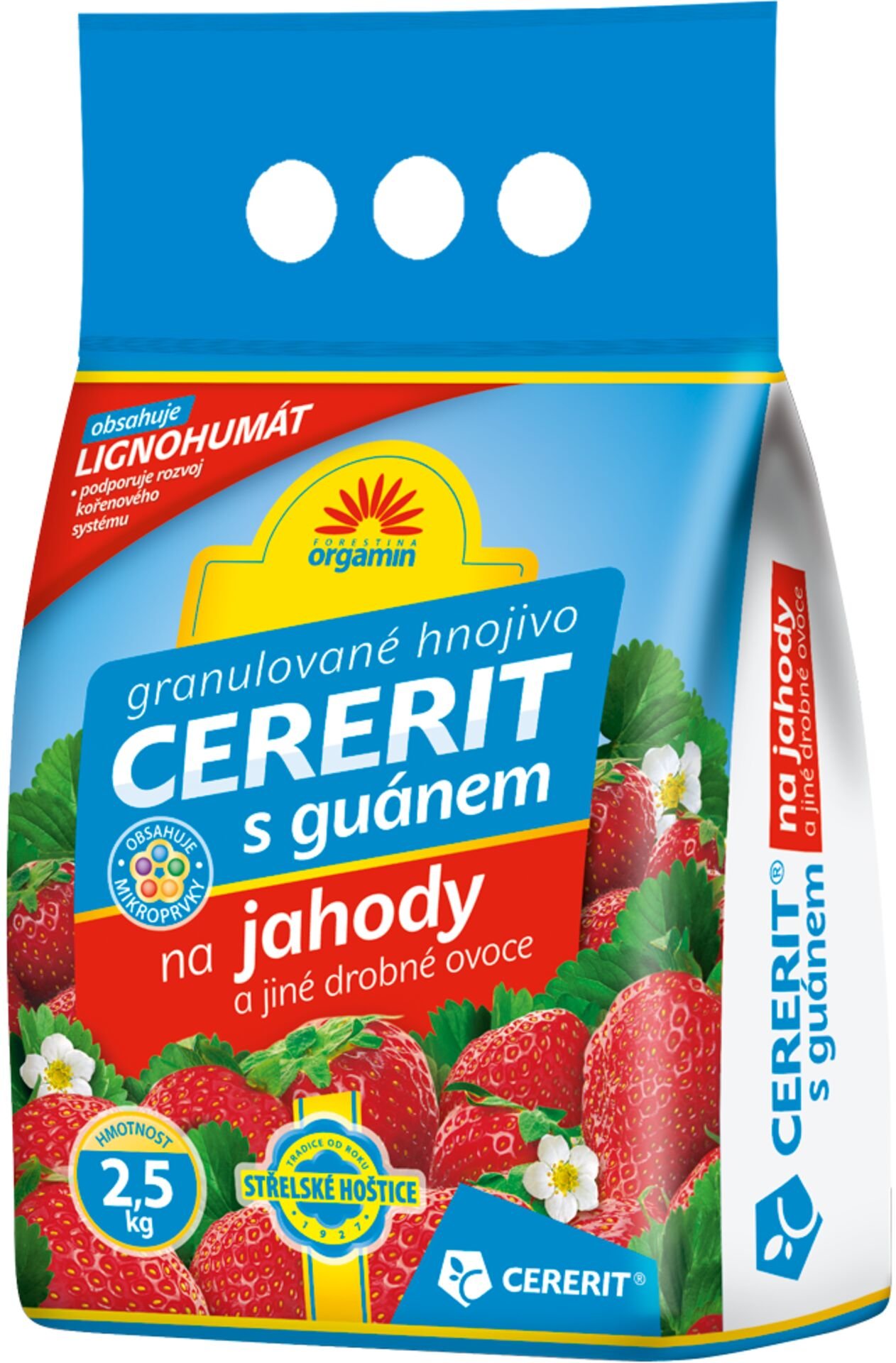 CERERIT Z GUANO na truskawki i inne drobne owoce to organomineralne granulowane nawozy ze śladowymi pierwiastkami, przeznaczone do truskawek i innych owoców drobnych. Produkt zawiera co najmniej 60% oryginalnego nawozu CERERIT GSH NPK 8-13-11.