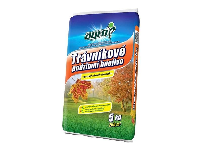 AGRO Podzimní trávníkové hnojivo podporuje lepší vyzrávání trávníku před zimou, zvyšuje odolnost proti vymrzání a vůči suchu, snižuje riziko napadení houbovými chorobami, udržuje travní porost kompaktní a odolnější vůči sešlapu. Obsahuje vysoký podíl hořčíku pro sytě zelenou barvu trávníku a vysoký podíl síry nezbytné pro růst a zdravý vzhled trávníku.