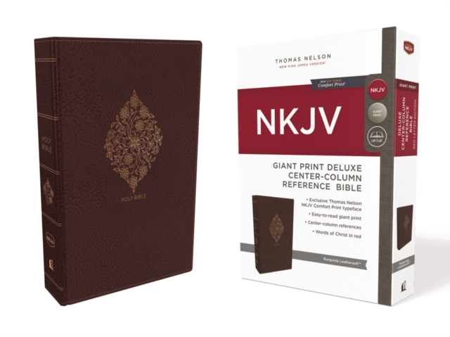 Experience a new level of visual comfort for your study of God's Word with Thomas Nelson's NKJV Giant Print Center-Column Deluxe Reference Bible. The exclusive Thomas Nelson NKJV Comfort Print typeface in a giant-print format makes reading a pleasure, and the generous cross-reference system in the center column is the perfect study companion.