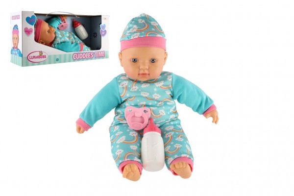 Panenka miminko 40cm měkké tělo s lahvičkou s dudlíkem v krabici 41x19x12,5cm