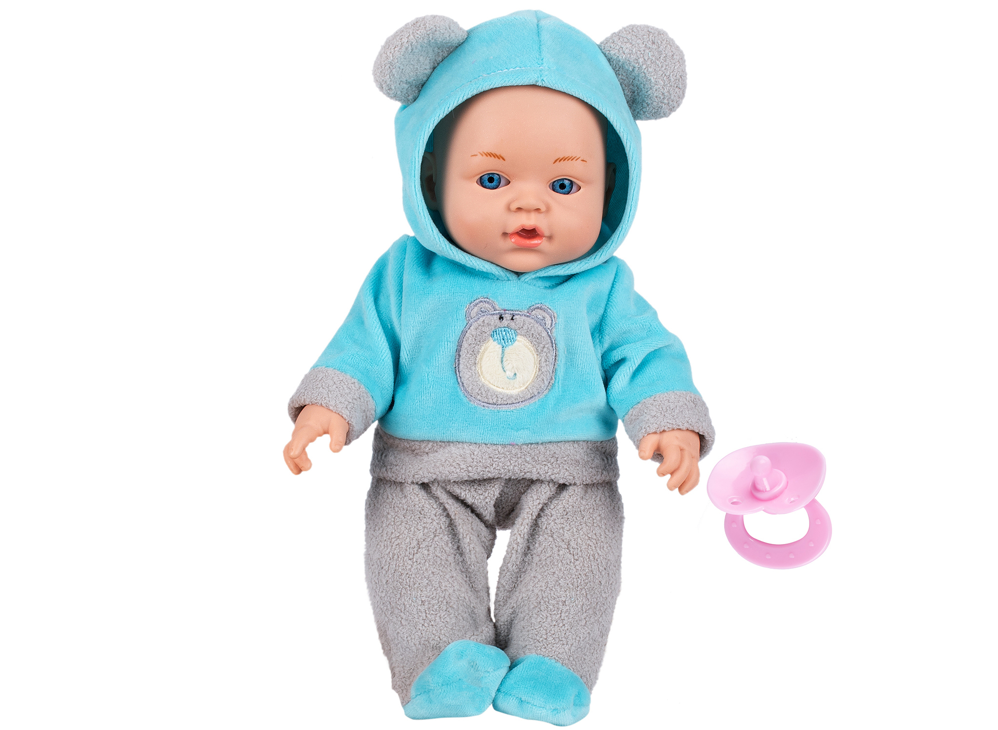 Miminko s dudlíkem. Velikost 21,5 cm. Obleček s ušima. przeczytaj całość