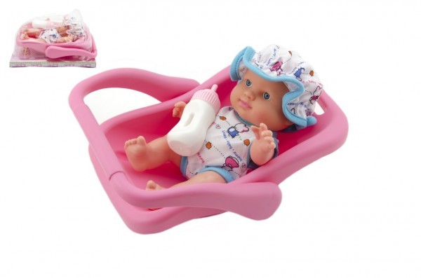 Miminko pevné tělo plast 25cm v nosítku s doplňky 2 barvy v blistru