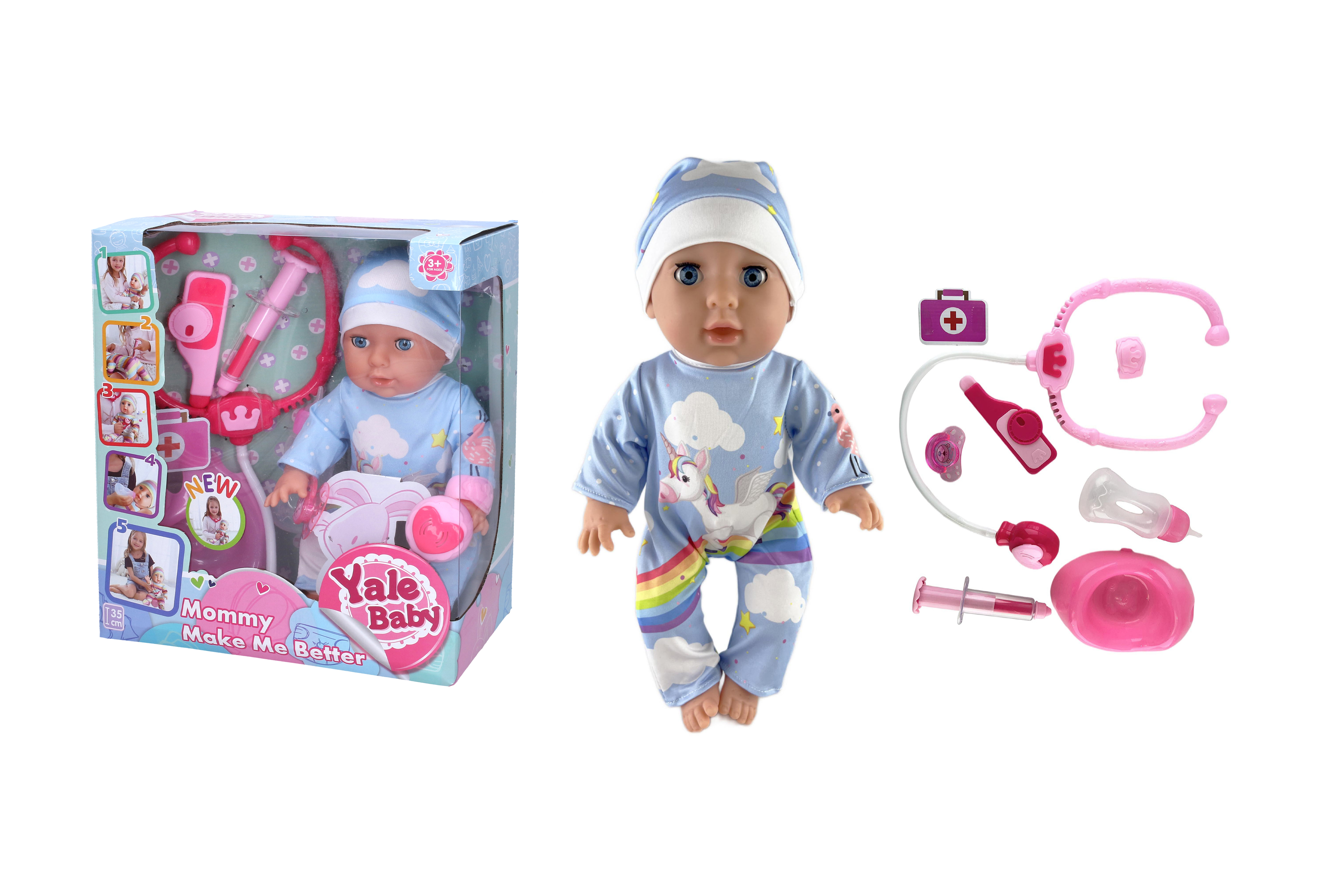 Miminko čurající. Velikost 35cm. Balení obsahuje miminko, nočník, lahvičku, lékařské příslušenství, dudlík, průkazku.Miminko se nakrmí vodou z lahvičky a po zmáčknutí bříška čurá se zvukem. Po zmáčknutí tlačítka na pravé straně tělíčka se směje, na levé kašle, pláče, červená se a má teplotu. Po...
