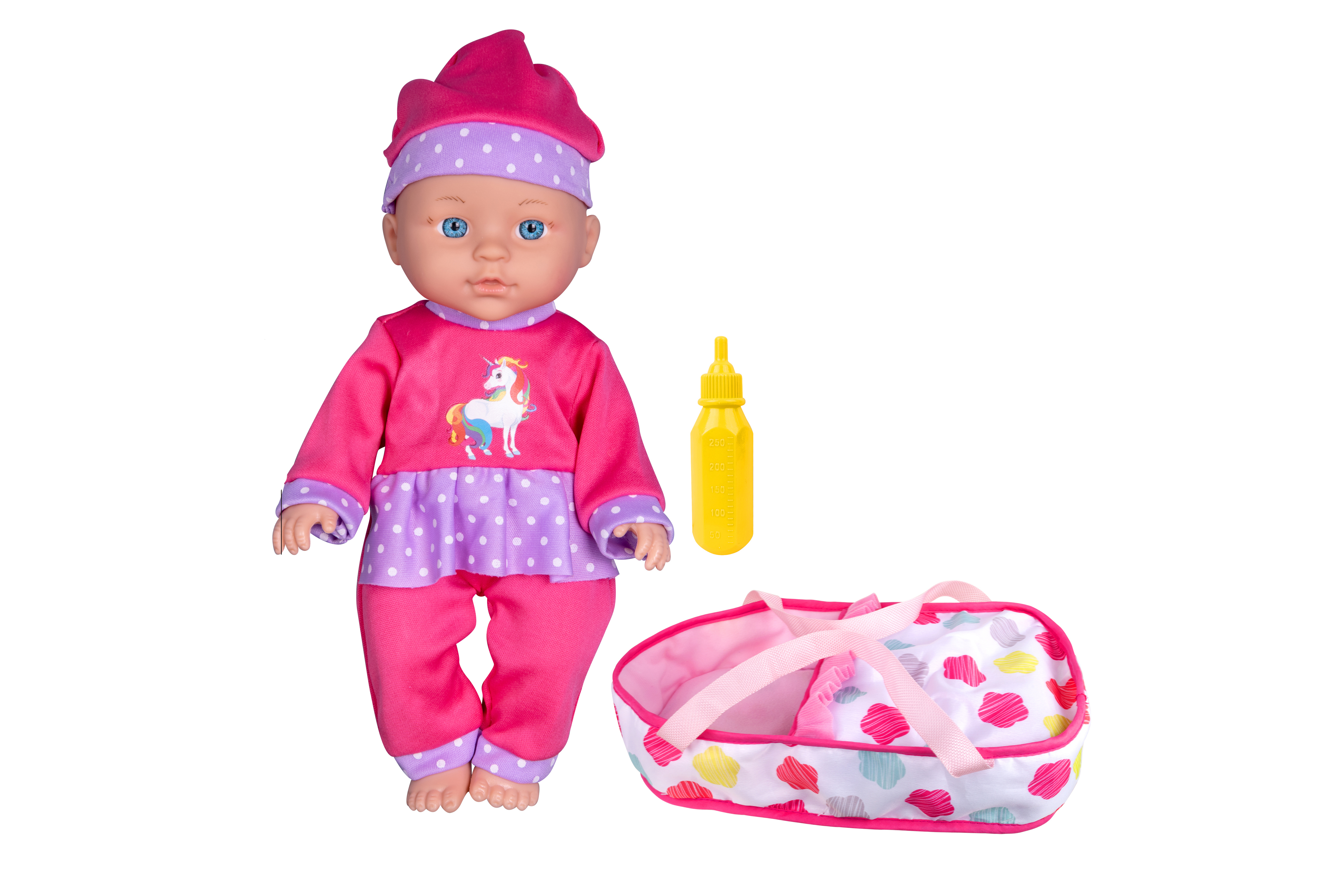 Miminko v přenosné tašce. Velikost 30 cm. Měkké tělíčko. Balení obsahuje miminko, tašku s popruhy na přenášení ležícího miminka, lahvičku. przeczytaj całość