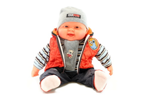 Duża lalka - niemowlę chłopiec - z miękkim ciałem o wymiarach ok. 55 x 30 x 13 cm. Ubranko można zdjąć. Pakowana w woreczku. Wiek 3+ przeczytaj całość