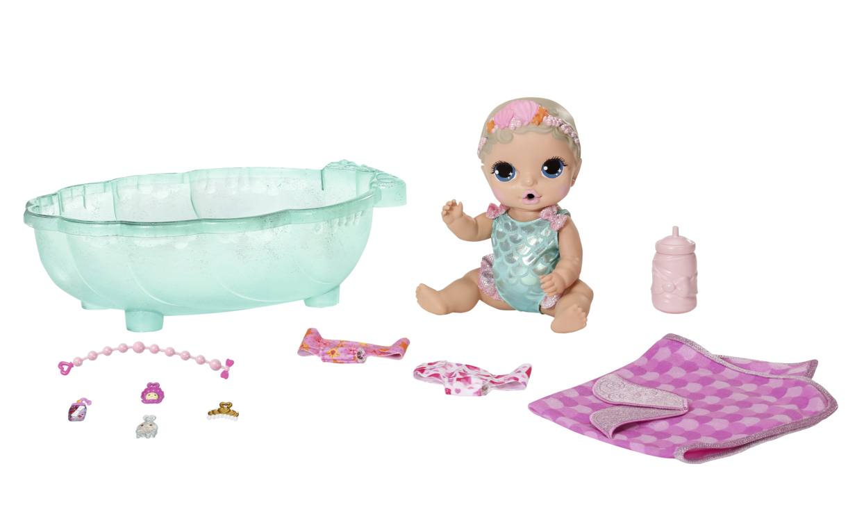 Čáp byl na prázdninách v Atlantidě a zpátky s sebou přinesl mořskou pannu.28centimetrové miminko je zabalené jen v ručníku s kapucí, ozdobeném krásným ploutve. Když ponoříš do vody žlutou hvězdici, uvidíš, jaké skrývá překvapení! Uvnitř se schovávají plavky pro mořskou pannu. Teď můžeš miminko...