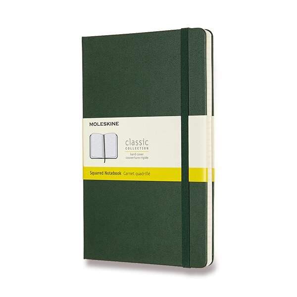 Zápisník Moleskine - tvrdé desky, L, čtverečkovaný - tm. zelený