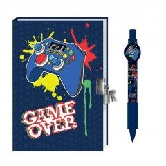 Pamiętnik w zestawie z pasującym długopisem. Pamiętnik zamykany na kłódkę, wymiary: 12x18 cm. przeczytaj całość