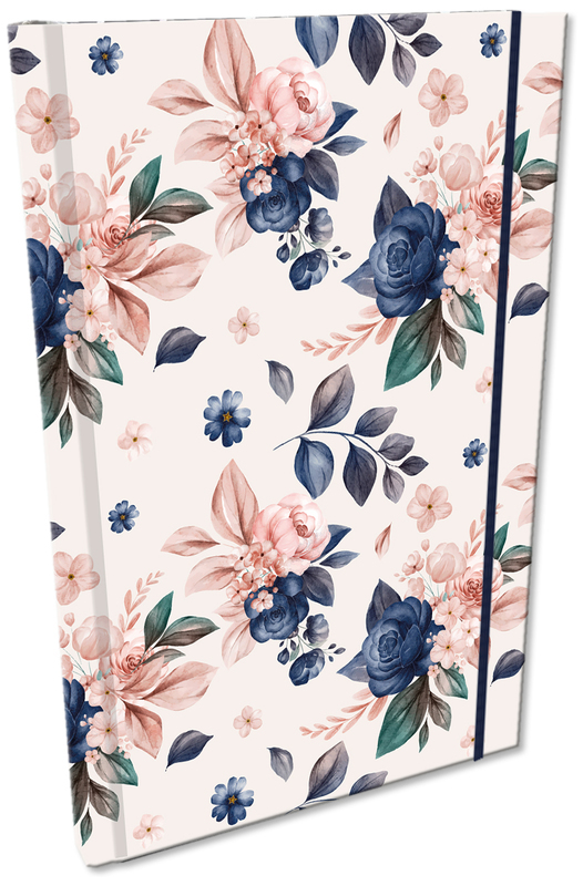 Notes A5 z gumką Soft Touch w kratkę Niebieskie Róże, Bee-Bee