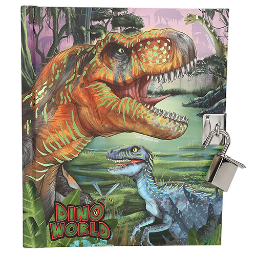 Zápisník na zámek Dino World, T-Rex a Velociraptor