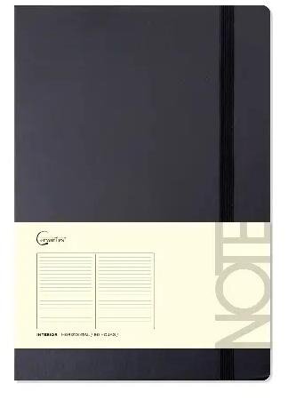 Notatnik kołowy. Okładka z tektury w linie. Zapięciena gumkę w kolorze pokrowca. 96 arkuszy o gramaturze 80 g/m2. Różne wzory: linie poziome, kwadraty 4 x 4 mm i gładkie. Rozmiar A5. Wymiary: 210x 148 mm. Czarny kolor. przeczytaj całość