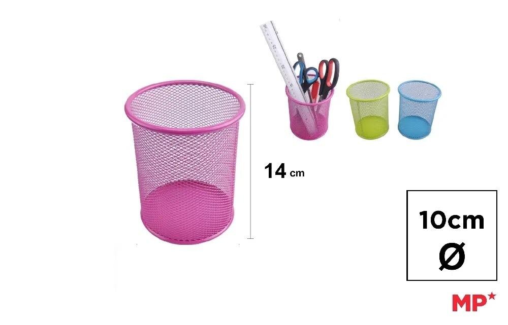 Stojak uchwyt na ołówki wykonany z metalowej siatki.Idealny do organizowania ołówków, długopisów,markerów, korektorów i trzymania ich podręką i w porządku. Okrągły. 100 mm. Wysokość 140mm. Dostępne w trzech różnych kolorach: niebieskim,zielonym i różowym. przeczytaj całość
