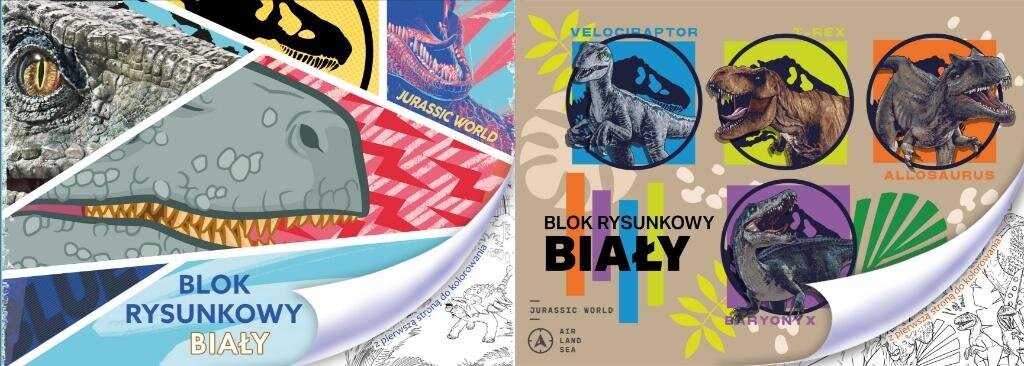 Blok rysunkowy A4/20K biały Jurassic park mix