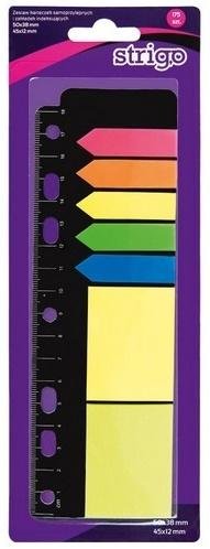 Zakładki indeksujące i karteczki samoprzylepne idealne do podkreślania, oznaczania i indeksowania istotnych informacji, zestaw wyposażony w linijkę posiadają perforację umożliwiającą wpięcie do segregatora, zawiera: 2 bloczki po 25 sztuk neonowych karteczek samoprzylepnych 50 x 38 mm oraz 5 bloczków po 25 sztuk neonowych zakładek indeksujących 45 x 12 mm.