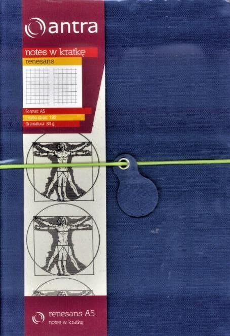 Elegancka kolekcja notesów: RenesansRozmiar i typ wnętrza:A5, kratka 145 x 210 mm (wymiar zewnętrzny okładki)Oprawa twarda: ekologiczna z surowców naturalnychPapier 80 gKoperta z tyłu na karteczkiPosiadają specjalną gumkę na długopisPierwsza i ostatnia strona notesu wykonana z ozdobnego papieru w...