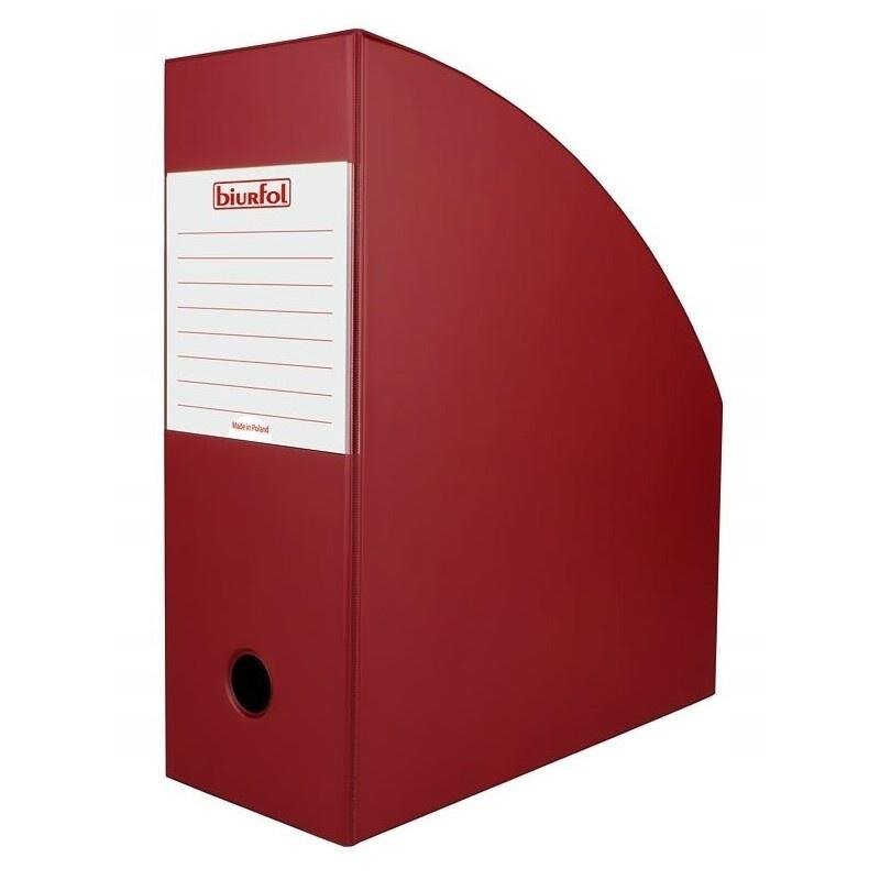 Pojemnik na dokumenty stojący marki Biurfol bordowy 11 cm- szerokość grzbietu: 11 cm- wykonany z kolorowej, wodoodpornej folii PVC wysokiej jakości,- wewnątrz dodatkowo usztywniony tekturą dla jeszcze lepszej ochrony dokumentów,- pojemnik mieści dokumenty w formacie A4,- wyposażony w kieszonkę z...