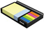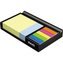 Przybornik z karteczkami na biurko. Zawiera: notes żółty pastelowy o wymiarach 76x76mm - 200 karteczek, notes/zakładki niebieskie pastelowe o wymiarach 76x25mm - 200 karteczek oraz komplet klasycznych zakładek indeksujących o wymiarach 45x12mm, mix 5 kolorów neonowych, po 25 zakładek w każdym...