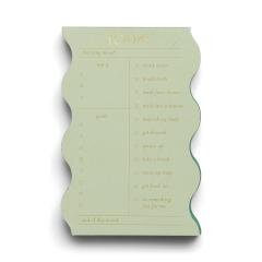 Wavy Daily Notepad Sage | DESIGNWORKS INKRobienie notatek właśnie stało się przyjemniejsze! Nowoczesne i wydajne? Sprawdź! Z eleganckim, falistym wzorem i specjalnie sformatowanymi stronami śledzenie codziennych celów to bajka.Nasz notatnik w kształcie fal zawiera ręcznie grafikę ze złotej...