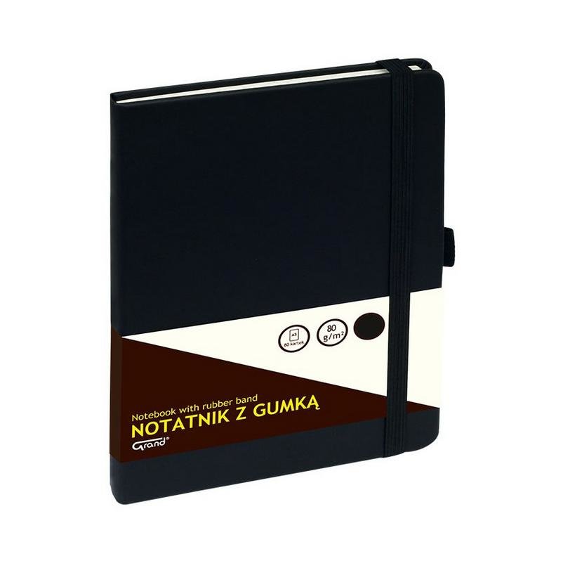 Notatnik A5/80K kratka z gumką czarny GRAND