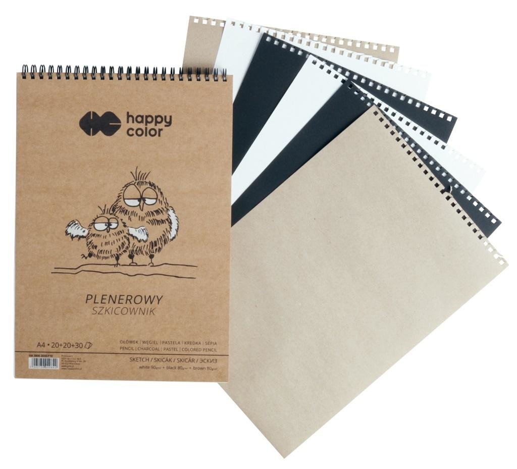 Szkicownik na spirali na sztywnym kartonowym podkładziez trzema rodzajami papieru białym, czarnym i brązowym- Wszystkie papiery mają lekko szorstką powierzchnię, dziękiczemu idealnie nadają się do szkiców i rysunków ołówkiem,kredkami, pastelami, kredą i węglem- Idealny szkicownik do wykorzystania...