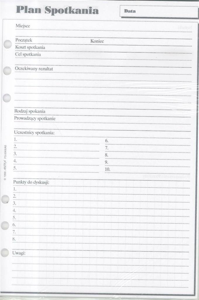 Wkład do organizera A5 Plan spotkań przeczytaj całość