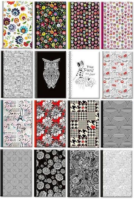 Notesy książkowe z blokiem notatnikowym na papierze ecru, w delikatne szare linie oraz czerwoną wstążką. Dostępne w trzech różnych formatach. Kolorowe okładki graficzne, powleczone specjalną aksamitną folią. Możliwość wklejek reklamowych. Uwaga !!!  Wzór wysyłany losowo ! przeczytaj całość