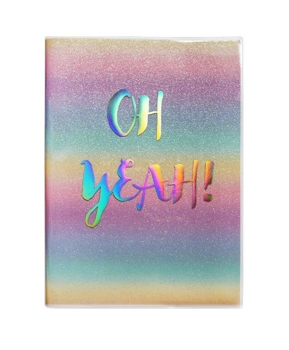 Notes w formacie A5, 80 kartkowy w kratkę, brokatowa okładka Oh yeah. przeczytaj całość