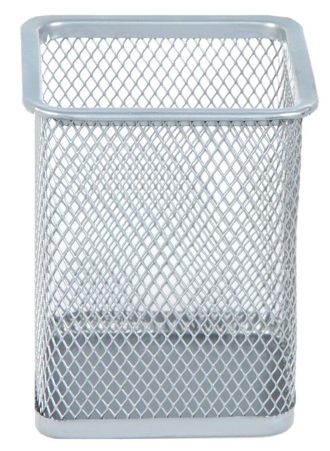 Pojemnik na długopisy metalowy kwadratowy srebrny