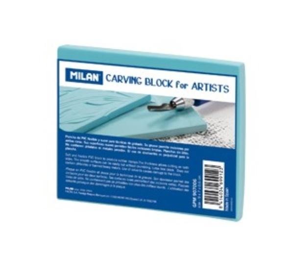 Blok do linorytu (Carving Block for Artists) jest przeznaczony do użytku w dziełach sztuki i rzemiośle. Jest to elastyczny i miękki arkusz winylowy służący do technik grawerowania i druku wypukłego. Ich gładkie powierzchnie pozwalają na łatwe i czyste nacięcia. Używając dłuta precyzyjnie żłobimy kontury, dodając detale o różnych grubościach. Przygotowane wyżłobienia po nałożeniu farby służą do drukowania wzorów, także po obu stronach. Blok łatwo się myje po użyciu i można go ponownie użyć. Blok nie zawiera ftalanów ani metali ciężkich. Użycie rozpuszczalników może uszkodzić blok. Rozmiar bloku: 90 x 70 x 6 mm.