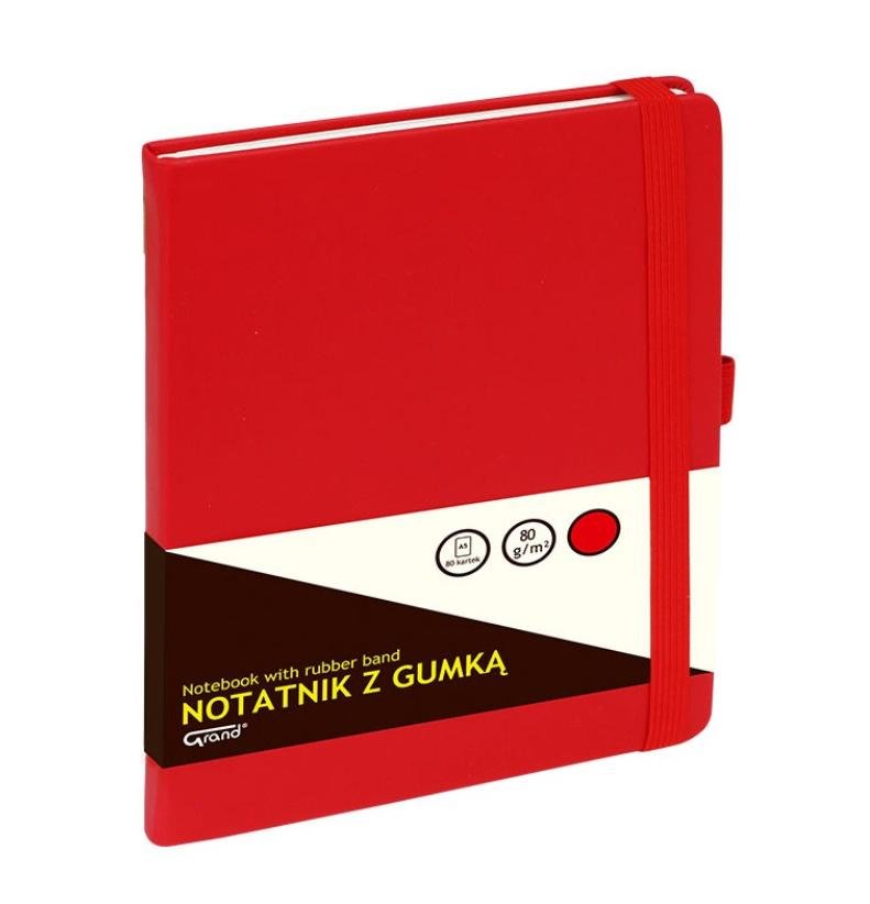 Notatnik A5/80K kratka z gumką czerwony GRAND