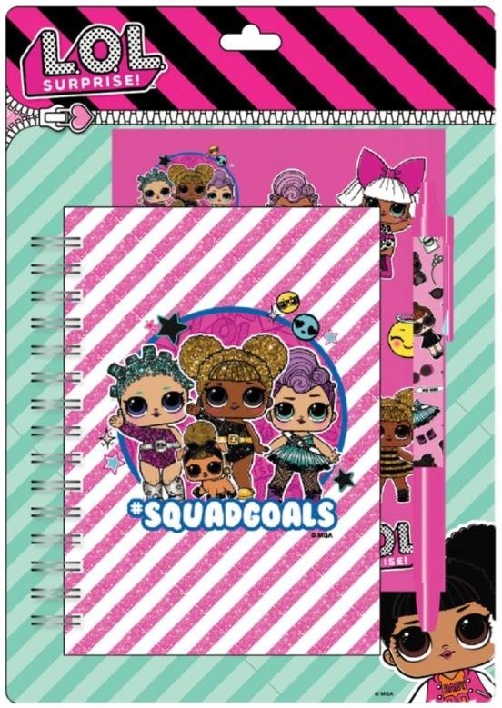 L.O.L Surprise, Notes Z Długopisem. Notes , kołonotatnik w stylowe paski. W różowych kolorach oraz z nadrukowanymi wesołymi detalami. Wyposażony jest w stylowy długopis z dziewczynką L.O.L. Dodatkowo w zestawie komplet naklejek. Idealnie mieści się w torebce. przeczytaj całość