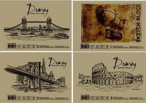 Szkicownik A5 koło 30 arkuszy 90g/m2 brązowy papier, mix wzorów, wzór wysyłany losowo. przeczytaj całość