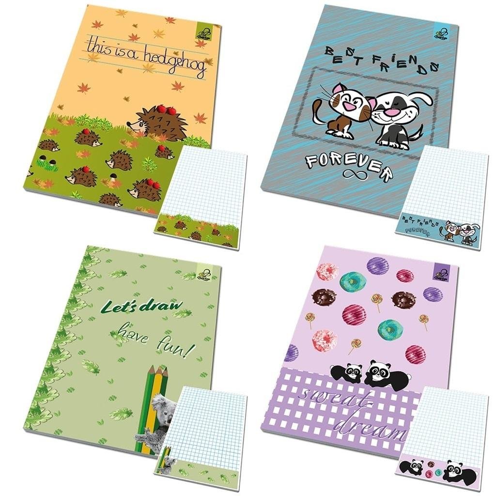 Opakowanie zbiorcze 10 sztuk.Notes formatu A6:50 kartek w kratkę,klejony,kartki wyrywane,środki z nadrukiem na dole strony,dla przedszkolaka i ucznia,kolorowe dziecięce wzory,dla dziewczynki i chłopczyka,kolory przedstawione na zdjęciu mogą nie odzwierciedlać w pełni prawdziwego produktu.Kolorowa...