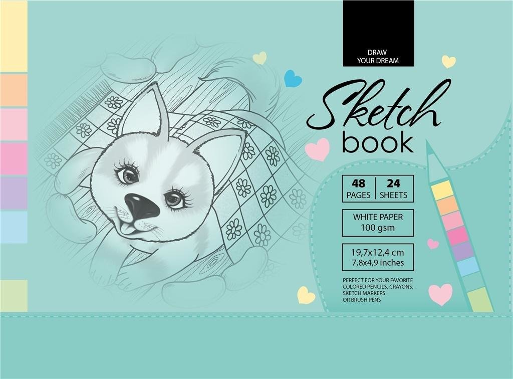 Szkicownik 197x124 mm, 48 stron, gramatura papieru 100g/m2. Ołówki, kredki, markery, mazaki, pędzle - tych rzeczy możesz użyć w tym szkicowniku! Namaluj swoje marzenia! przeczytaj całość