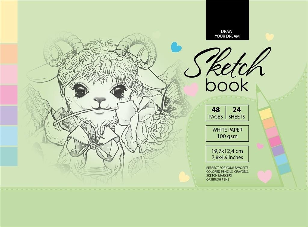Szkicownik 197x124 mm, 48 stron, gramatura papieru 100g/m2. Ołówki, kredki, markery, mazaki, pędzle - tych rzeczy możesz użyć w tym szkicowniku! Namaluj swoje marzenia! przeczytaj całość