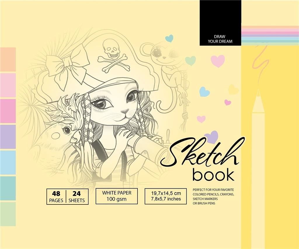 Szkicownik 197x145 mm, 48 stron, gramatura papieru 100g/m2. Ołówki, kredki, markery, mazaki, pędzle - tych rzeczy możesz użyć w tym szkicowniku! Namaluj swoje marzenia! przeczytaj całość