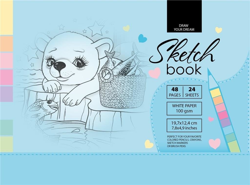 Szkicownik 197x124 mm, 48 stron, gramatura papieru 100g/m2. Ołówki, kredki, markery, mazaki, pędzle - tych rzeczy możesz użyć w tym szkicowniku! Namaluj swoje marzenia! przeczytaj całość