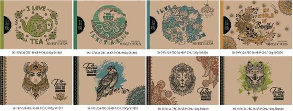 Szkicownik 197x124 36 stron 100g/m2 TW karton, mix wzorów, wzór wysyłany losowo. przeczytaj całość