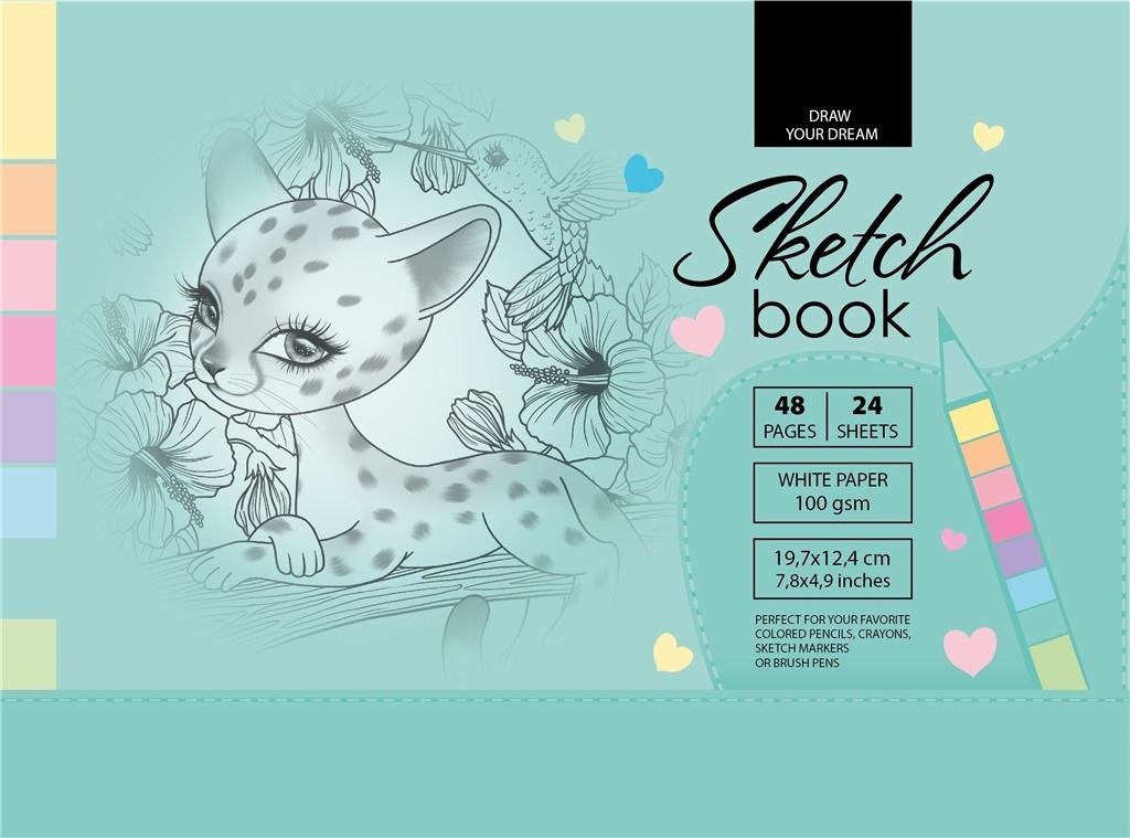 Szkicownik 197x124 mm, 48 stron, gramatura papieru 100g/m2. Ołówki, kredki, markery, mazaki, pędzle - tych rzeczy możesz użyć w tym szkicowniku! Namaluj swoje marzenia! przeczytaj całość