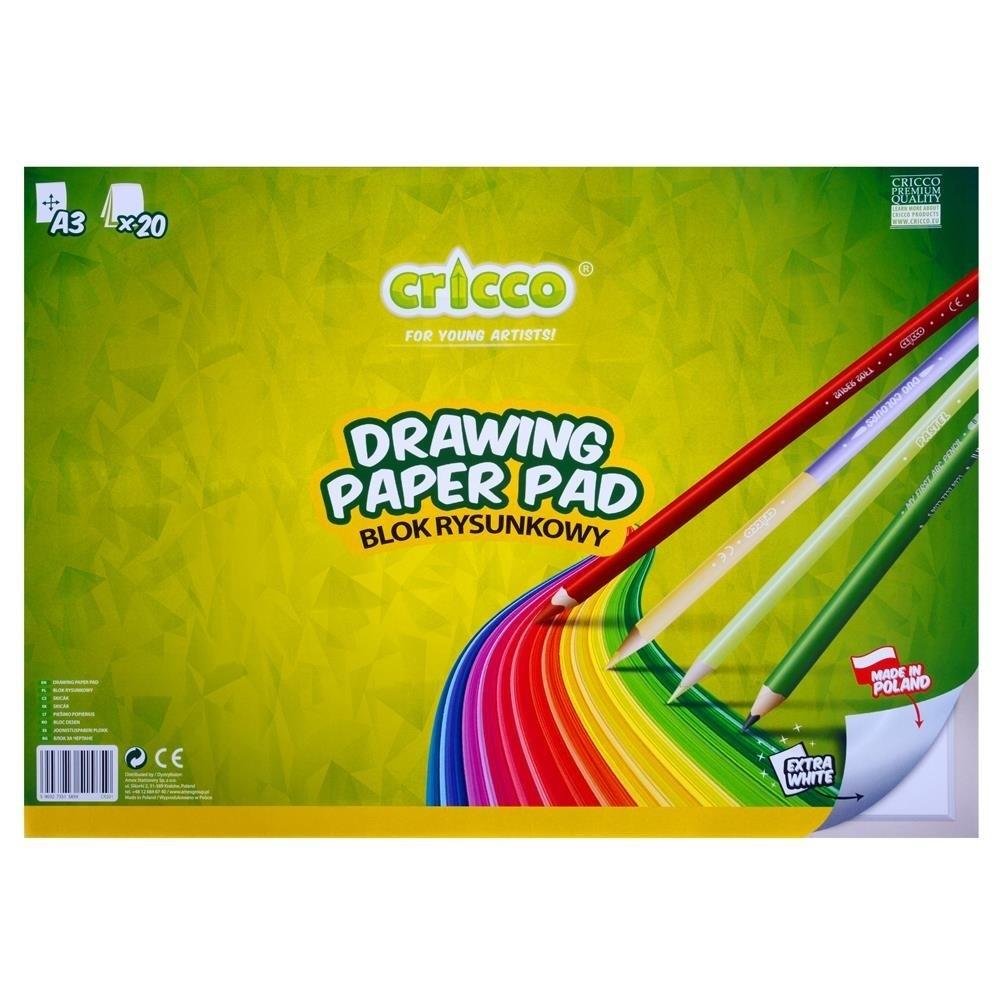 Blok rysunkowy Cricco w formacie A3 z papierem w kolorze białym. 20 arkuszy jednostronnie klejonych o gramaturze 80 g. Doskonały do wszelkich wyzwań młodych artystów. Wyprodukowane w Polsce. przeczytaj całość