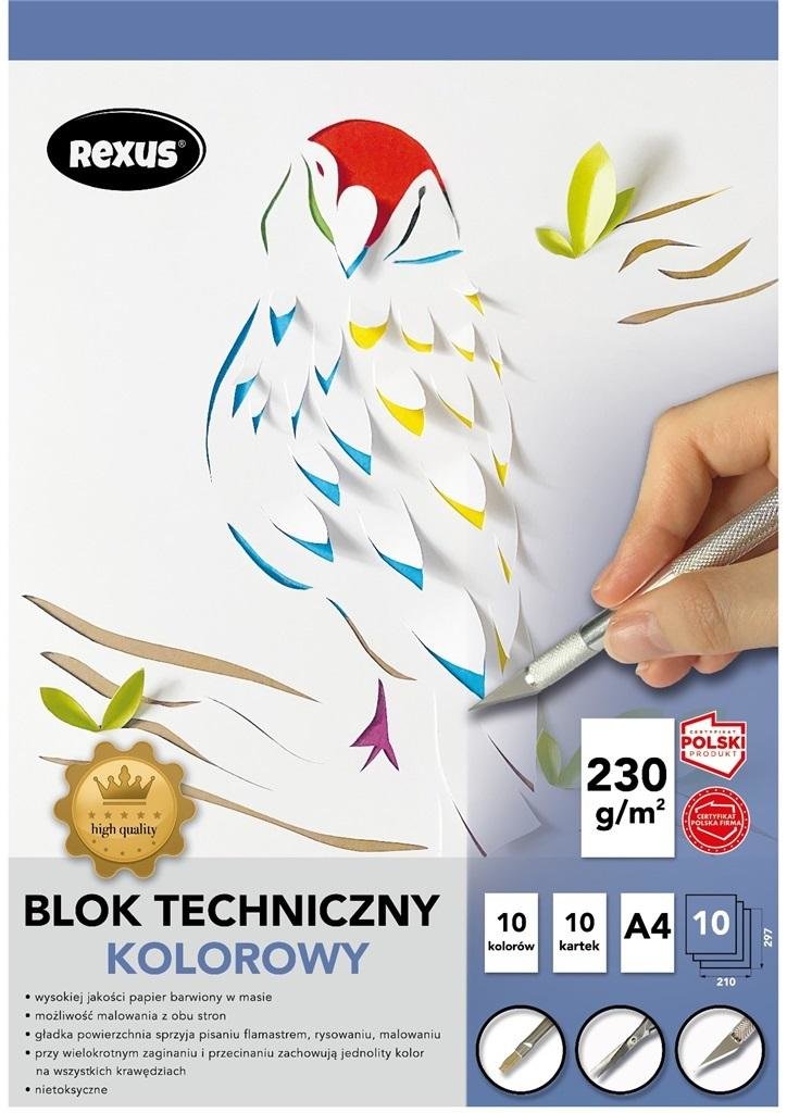 Mix wzorów, towar wysyłany losowo.Blok techniczny premium w formacie A4. Zawiera 10 kolorowych arkuszy o gramaturze 230g/m2. Doskonale nadaje się do rysowania i malowania, ołówkiem, kredkami, pisakami, czy tworzenia rysunków technicznych. Całość została usztywniona tekturowym podkładem. przeczytaj całość