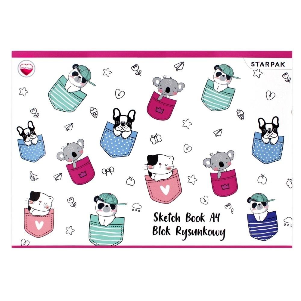 Opakowanie zbiorcze 20 sztuk.Blok rysunkowy w formacie A4 z 20 białymi kartkami z kolekcji STARPAK Minisy. Okładka ozdobiona kolorową i inspirującą grafiką. Przeznaczony do rysowania kredkami, ołówkiem, pastelami oraz malowania farbami wodnymi, odporny na wielokrotne wymazywanie i poprawki...