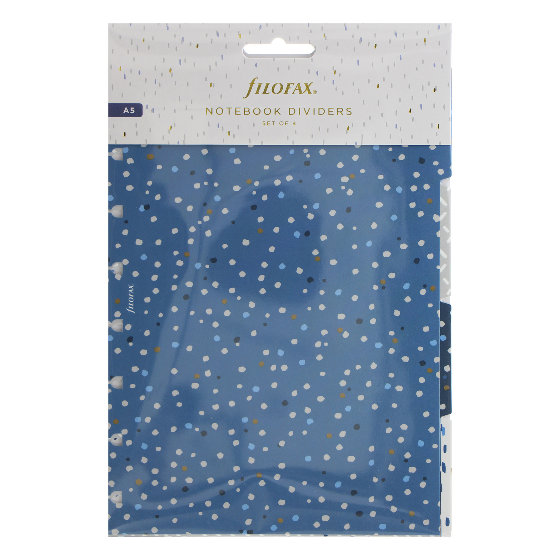 Plánujte a soustřeďte se! Dodejte Vašemu Filofax Notebook více moderní vzhled s touto barevnou sadou čtyř odolných plastových rozřazovačů z naší kolekce Indigo, které jsou speciálně navržené, aby ladily s Vašim plnitelným zápisníkem Filofax Notebook A5. Tato sada obsahuje oboustranně potištěné rozřazovače v barvách Indigo, navy, šedá a bílá. Další vlastnosti 4 rozřazovače s prázdnou záložkou