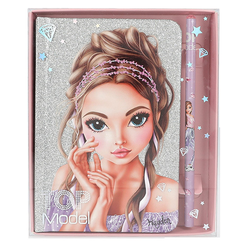 Zápisník s tužkou Top Model, Linkovaný, 160 stran, stříbrné flitry + Hayden